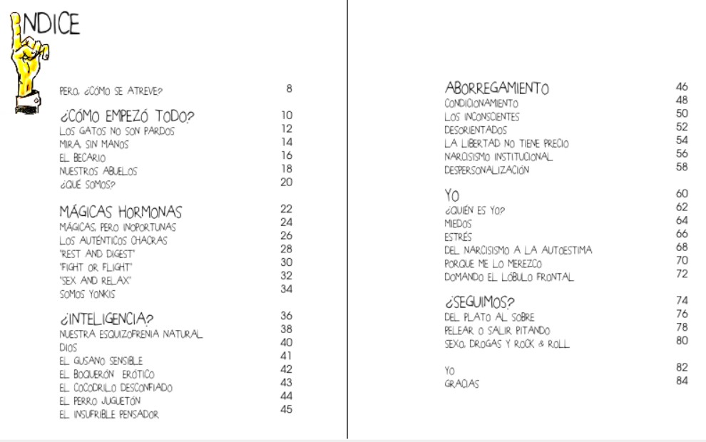 El librito tiene 88 páginas ilustradas con IH (Inteligencia Habitual) o sea con mis manitas y papel y lápiz, en formato bolsillo (suponiendo que tienes bolsillos DIN A5+), para que lo leas de un tirón, en el metro o en el WC.